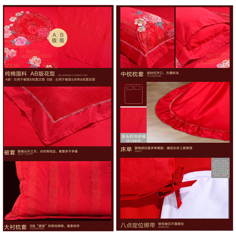 花好月圆 床单八件套(被套1件床单1件枕套4件方抱芯1件方抱套1件)(适合1.8米床)【纯棉提花/红】 |