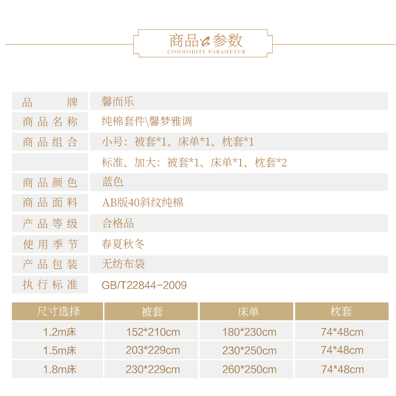 馨梦雅调 床单四件套(被套1件床单1件枕套2件)(适合1.5米床)【纯棉/蓝】 |