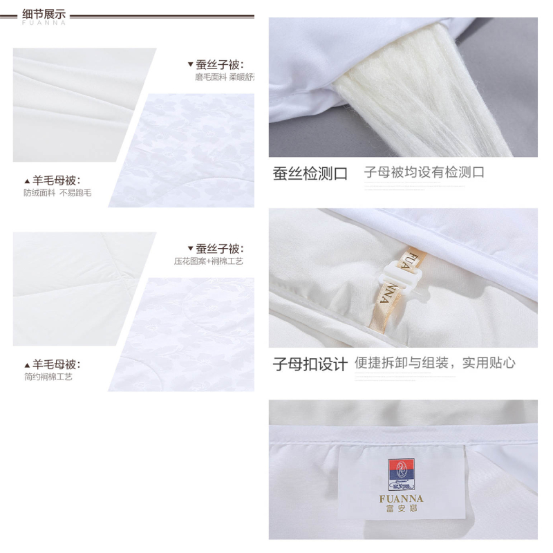 蚕丝羊毛二合一被(被芯1件)(适合1.8米床)【面料:聚酯纤维;填充:羊毛、蚕丝/白】 |