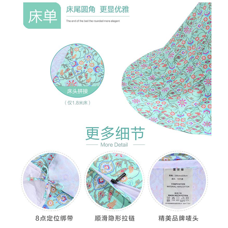 悦玺神殿 床单四件套(被套1件床单1件枕套2件)(适合1.5米床)【60支长绒棉/绿】 |