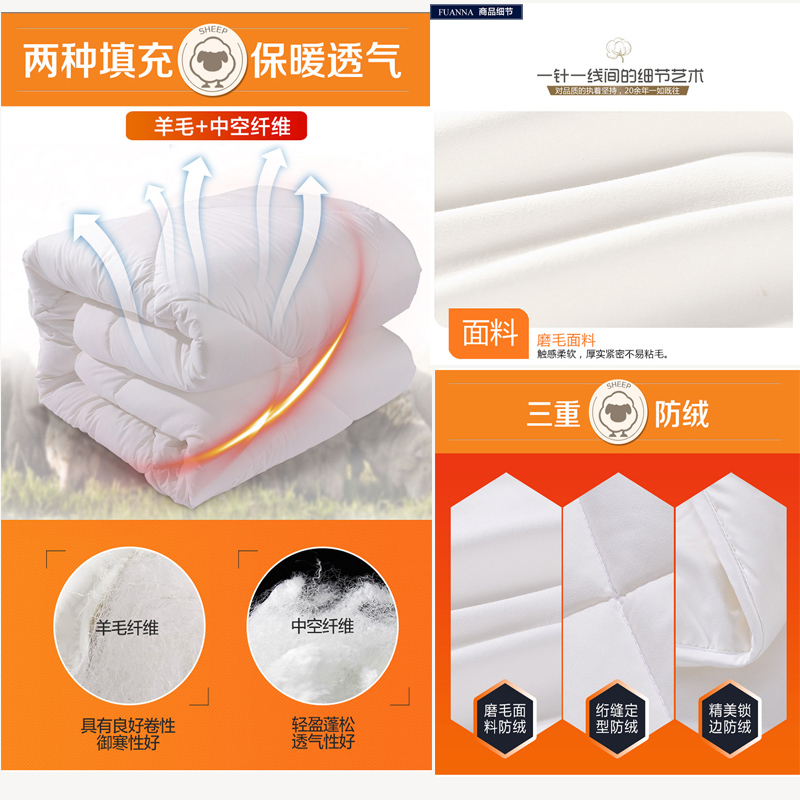进口混合羊毛被 (被芯一件)(适合1.2米床)【填充物:进口羊毛+聚酯纤维/白】 |