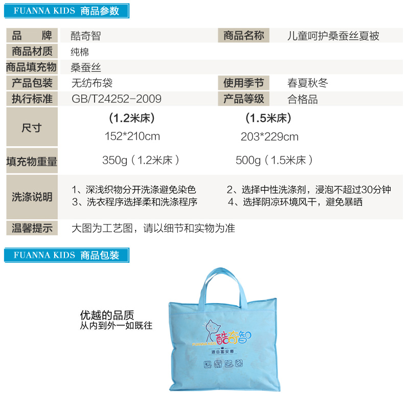 儿童呵护桑蚕丝夏被(被芯1件)(适合1.5米床)【面料:纯棉;填充:桑蚕丝/白】 |