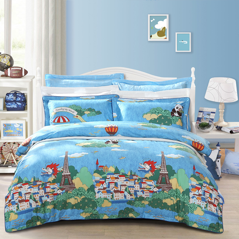 阿宝环游世界床单四件套(适用1.8米床)(被套1件床单1件枕套2件)【纯棉/蓝】 |