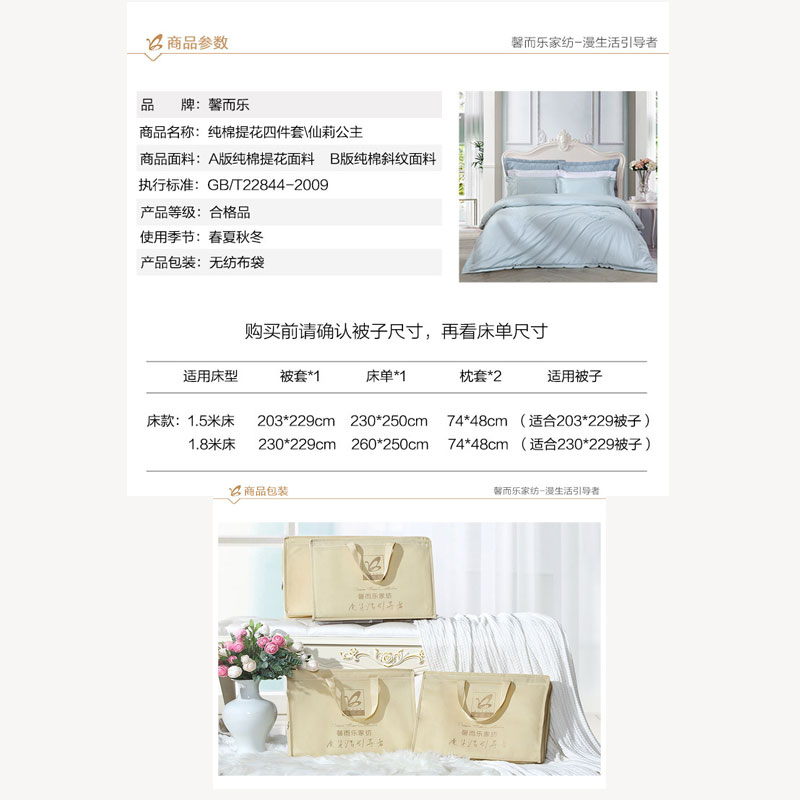 仙莉公主四件套(被套一件床单一件枕套两件)(适用1.5米床)【100%棉/蓝】 |