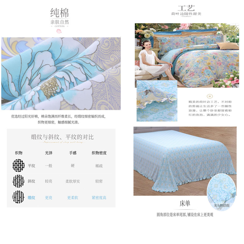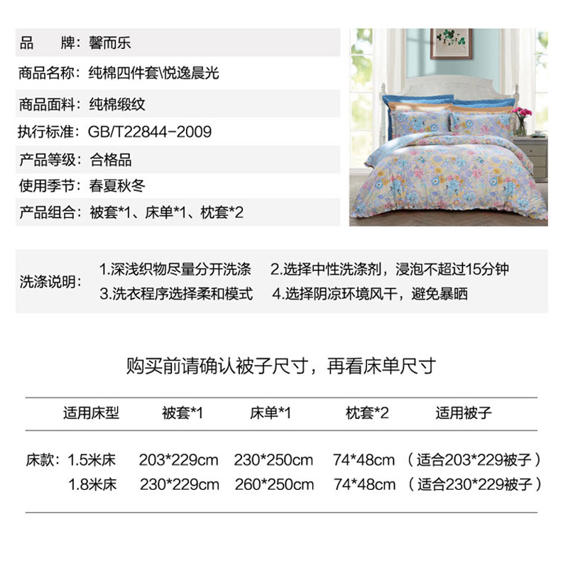 印花舒适四件套(被套一件床单一件枕套两件)(适用1.8-2.0米床)【纯棉缎纹/花色】 |