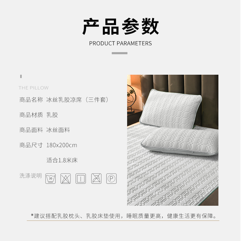 TAIHI泰嗨天然乳胶冰丝凉席三件套高级灰(适合1.8米床)【天然乳胶/高级灰】 |