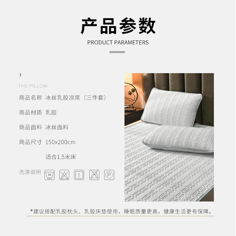 TAIHI泰嗨天然乳胶冰丝凉席三件套高级灰(适合1.5米床)【天然乳胶/高级灰】 |