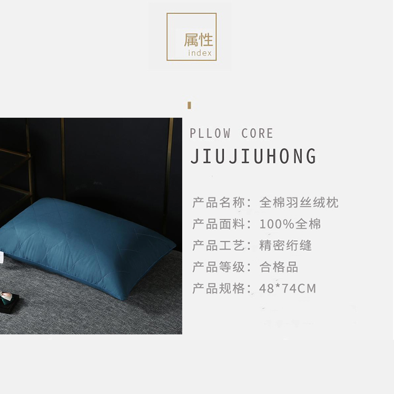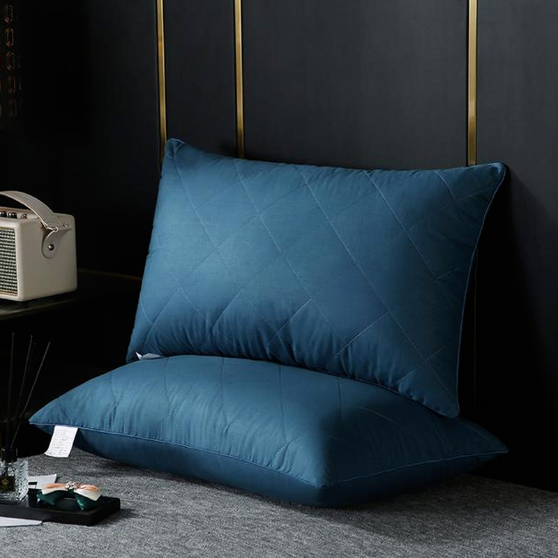 全棉大方格枕芯羽丝绒枕头【面料全棉填充羽丝绒/全棉蓝色】 |