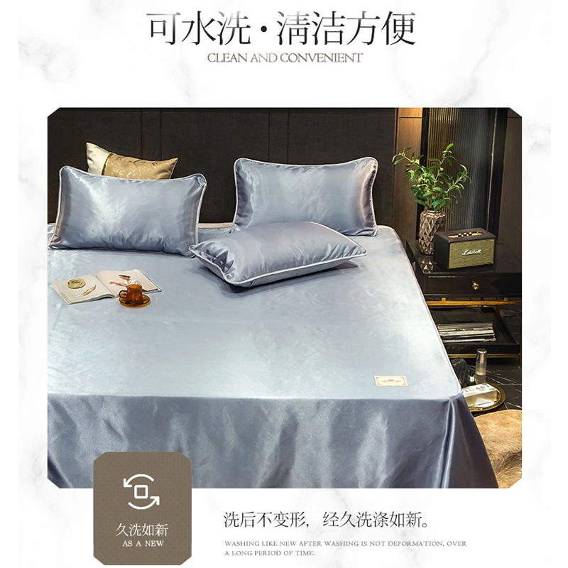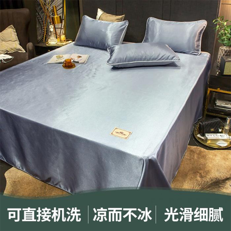 无印纯色床单款冰丝凉席三件套可机洗【冰丝面料(聚酯纤维)/贵族-兰灰】 |