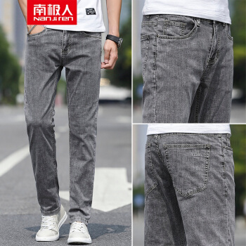 南极人牛仔裤男夏季薄款青年时尚透气裤子男商务休闲裤男宽松长裤男士弹力加肥加大码直筒牛仔男裤 浅蓝色 31 |