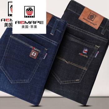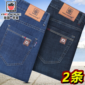 AEMAPE苹果牛仔裤男春夏季宽松直筒弹力男裤子商务休闲夏天薄款中年 25款深蓝+04款蓝黑 【2条春秋款】 28码【腰围2尺1】 |