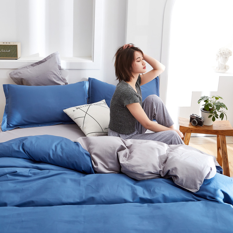 极简时尚双拼全棉喷气四件套【全棉/深蓝+浅灰】 |