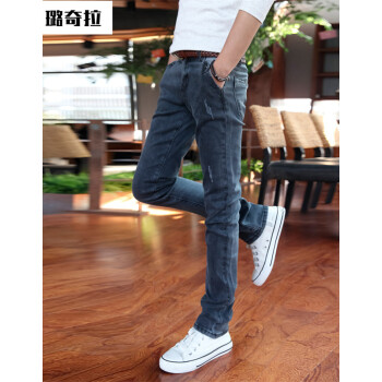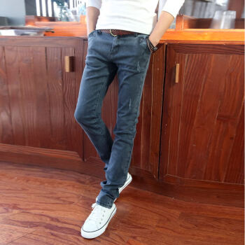 璐奇拉2020春夏新款牛仔裤男韩版时尚弹力修身小脚裤 男士休闲长裤子 蓝灰色 30 2尺3 |