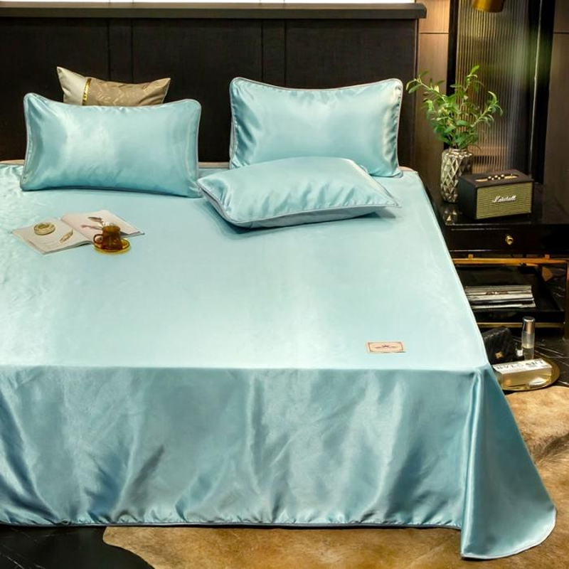 无印纯色床单款冰丝凉席三件套可机洗【冰丝面料(聚酯纤维)/贵族-水绿】 |