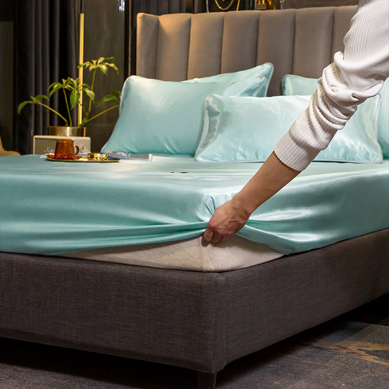 【柔软清爽 凉而不冰】无印床笠款冰丝席三件套【冰丝面料(聚酯纤维)/贵族-水绿】 |
