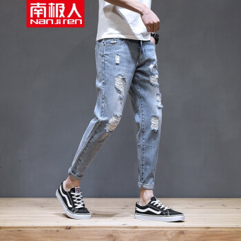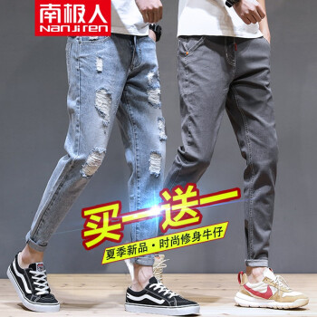 【两条装】南极人牛仔裤男夏季新款修身九分裤男薄款港风休闲裤男哈伦运动裤子男士潮流韩版破洞牛仔裤男裤 819蓝色+602灰色 31 |