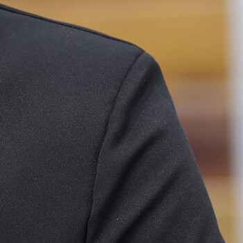 半双西服男2020夏季新款青年潮流纯色七分袖小西装婚礼伴郎礼服韩版修身职业正装外套男士商务休闲夹克Y 黑色 M(建议95-105斤) |
