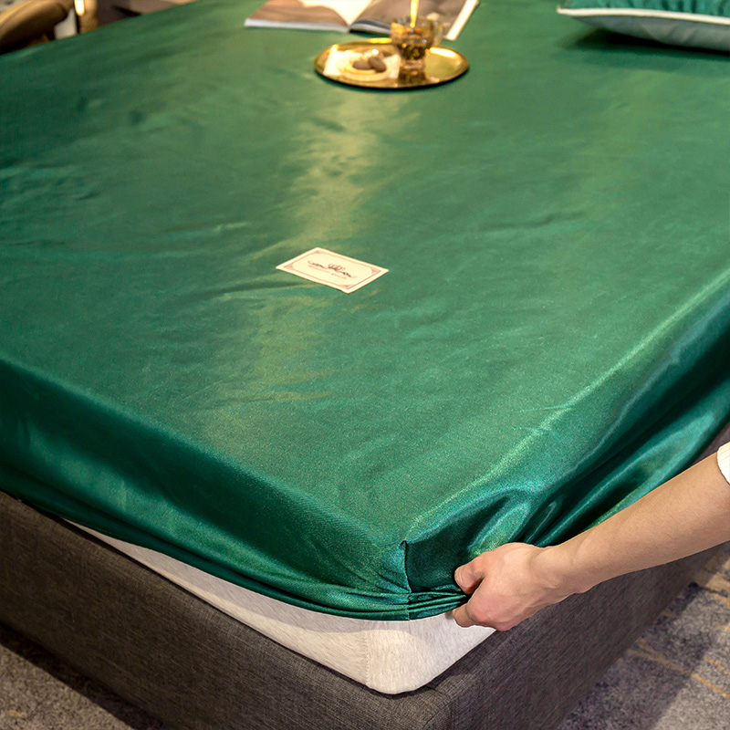 【柔软清爽 凉而不冰】无印床笠款冰丝席三件套【冰丝面料(聚酯纤维)/贵族-绿】 |