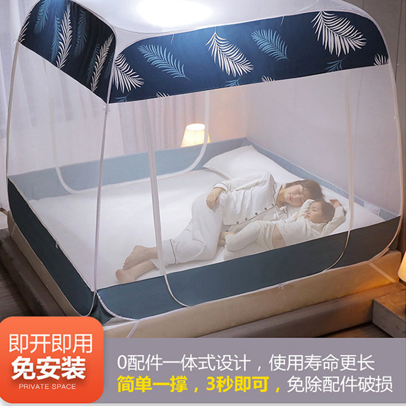 大顶部印花款免安装蚊帐【面料聚酯纤维支架包塑钢丝/蓝叶】 |