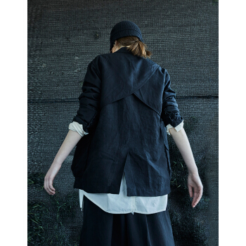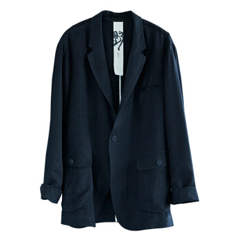 野无西服男原创设计男装2020秋季新款男士纯色长袖后中开叉设计黑色宽松休闲西装外套男 粗粝黑 S |