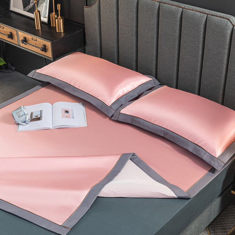 轻奢600D冰丝加厚三明治凉席三件套【聚酯纤维/三明治冰丝粉玉】 |
