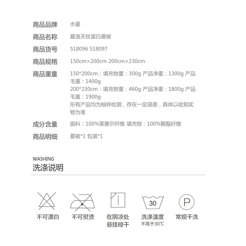 天丝蛋白夏被(夏被*1)【面料:100%莱赛尔纤维/夏洛天丝蛋白夏被】 |