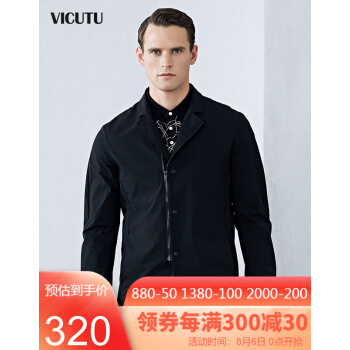 威可多VICUTU男士休闲单西服西装2020春季上新时尚潮流VRW17119867 黑色 170/88A |