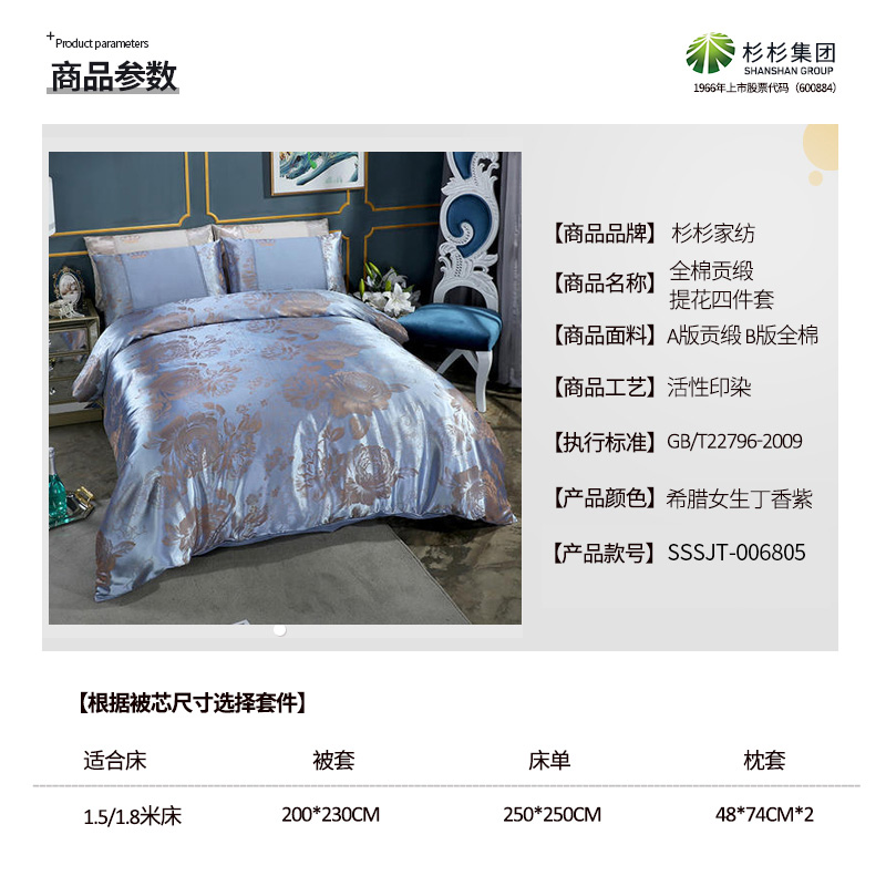 全棉贡缎提花四件套【全棉/希腊女生丁香紫】 |