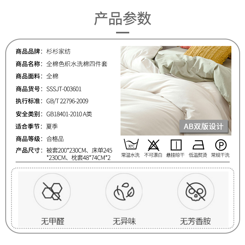 全棉色织水洗棉四件套【全棉/颜色自选】 |