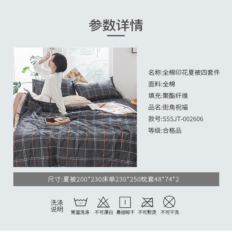 13070全棉夏被四件套【面料:纯棉填充:聚酯纤维/街角祝福】 |