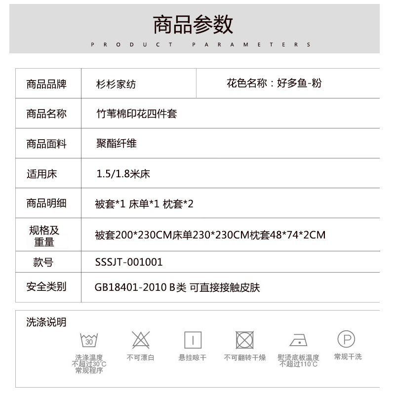 竹苇棉印花四件套【聚酯纤维/好多鱼-粉】 |