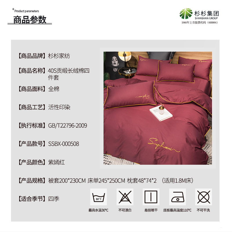 40s贡缎长绒棉四件套【全棉/紫嫣红】 |