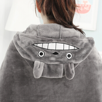 赫伊莎 披肩斗篷法兰绒膝盖毯盖被空调毯办公室毛毯午睡毯午休冬季小毯子 龙猫 90*160cm |