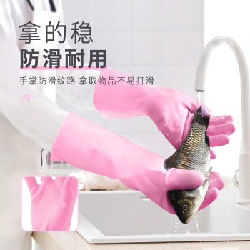 加品惠 乳胶手套洗碗洗衣清洁pvc加厚炫指橡胶皮手套中号2双装SY-1742A |