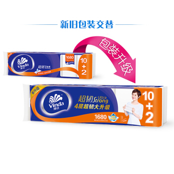 维达(Vinda) 无芯卷纸 超韧4层140g卫生纸巾*12卷(3层4层交替发货) |