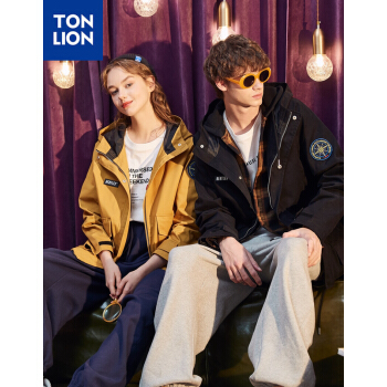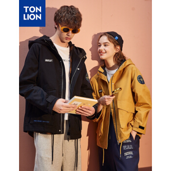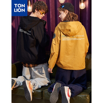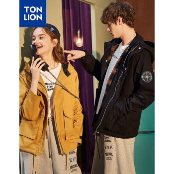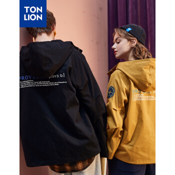 唐狮2020春新款外套 情侣工装连帽风衣夹克风衣 男款/黑色 L |