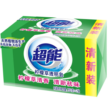 超能 柠檬草透明皂/洗衣皂(清新祛味)260g*2块 肥皂 不伤手天然植物成分去异味 硬水适用 |