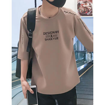 宾的短袖t恤男条纹针织衫新款衣服春季打底衫时尚男士上衣圆领套头半袖 851 卡其 聚酯纤维 XL |