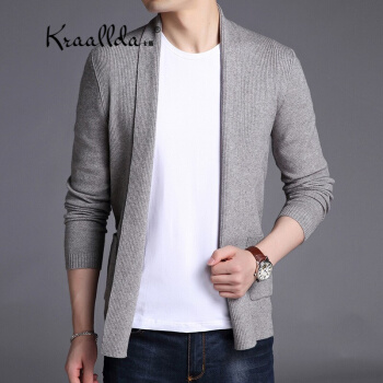 卡搭品牌轻奢男装开衫男毛衣外套夏季长袖韩版休闲男装针织衫春秋纯色修身潮流线衫 灰色 180/XL |