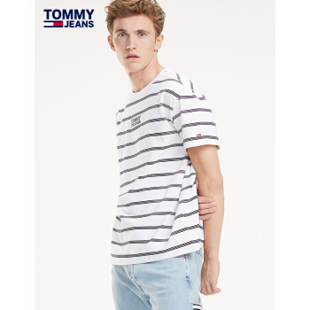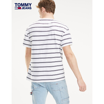 TOMMY JEANS 男装春夏短袖针织T恤(宽松版)-DM0DM06069 白色条纹100 M |