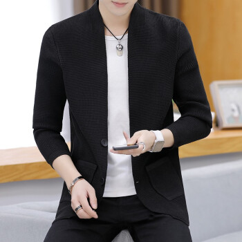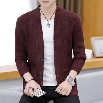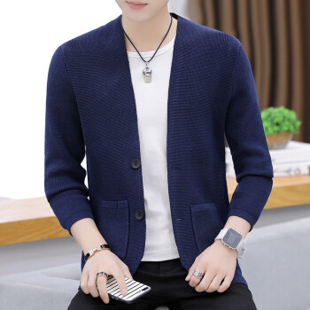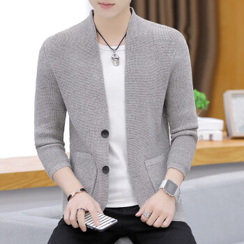 针织衫男士2020春秋季潮牌新款韩版修身休闲长袖纯色开衫毛衣潮流时尚百搭外套 Z8505 深灰色 XL |