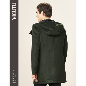 威可多VICUTU秋冬风衣男中长款连帽纯羊毛保暖修身毛呢大衣外套VRS16342848 军绿色 175/92A/L |