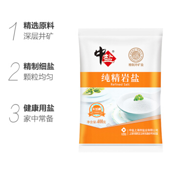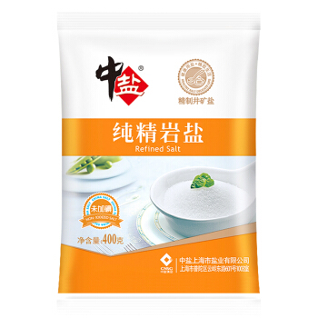 中盐 无碘纯精岩盐(未加碘)无碘盐 细盐 400g 中盐出品 |