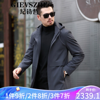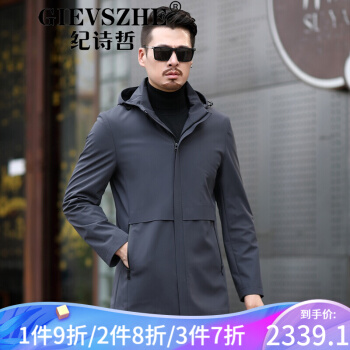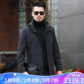 纪诗哲轻奢品牌男装风衣2020新款中长款男大衣秋季新款商务男装中年休闲春秋外套 黑色 170/88A |