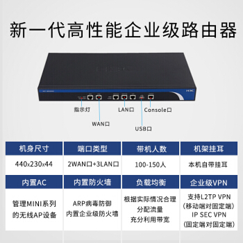 华三(H3C)多WAN口全千兆企业级VPN网关路由器 内置AC防火墙 带机量100-150 ER3200G2 |