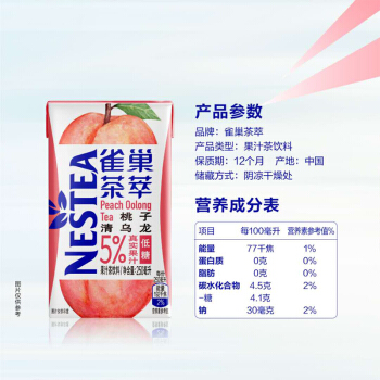 雀巢(Nestle)茶萃桃子清乌龙 果汁茶饮料250ml*24包 整箱 |
