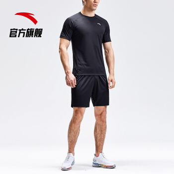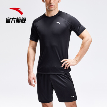 安踏 ANTA 官方旗舰运动套装男健身套装跑步套装足球套两件套短袖短裤套装 基础黑-4 L(男175) |