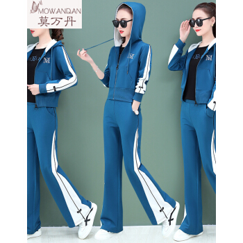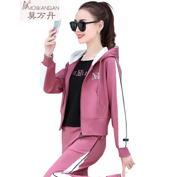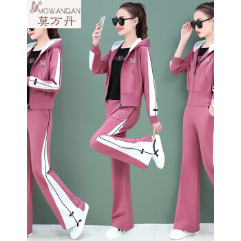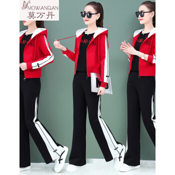 莫万丹高端新品卫衣女阔腿裤休闲运动套装女2020新款秋季韩版宽松洋气运动服三件套装MW9896 8813胭红 3XL |