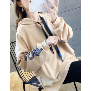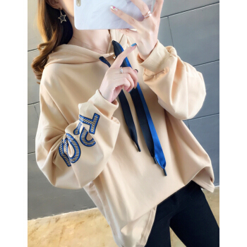 婪澈卫衣女2020秋季新款女装长袖韩版INS宽松连帽款假两件卫衣女潮 卡其色 L |
