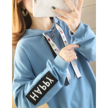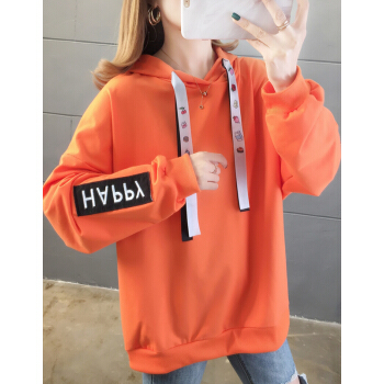 婪澈卫衣女2020秋季女装新款韩版宽松上衣春秋装贴布刺绣薄款长袖外套女休闲运动装女 杏色 L |